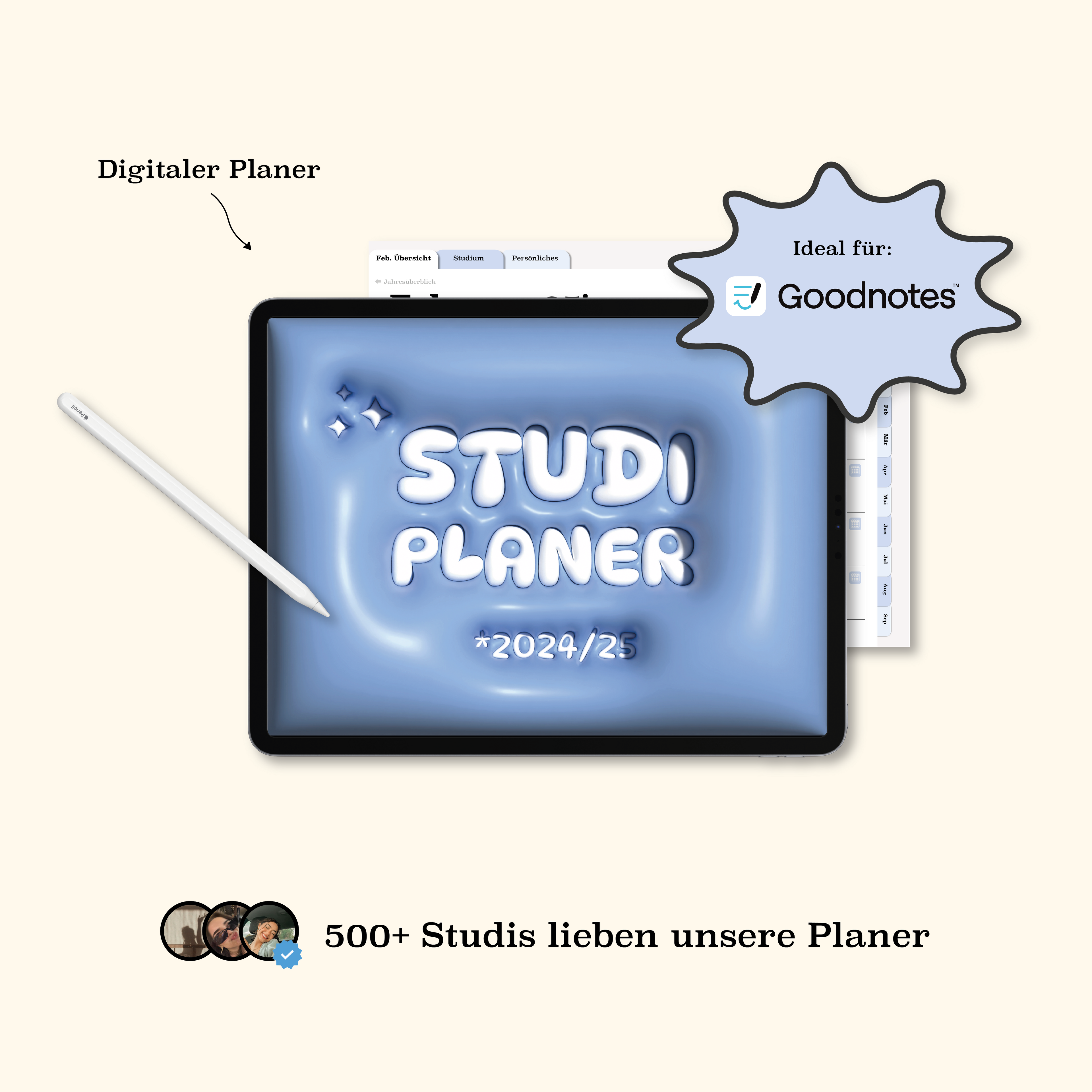 Digitale Planer sind Vorlagen, die dir helfen, Studium, Beruf oder Alltag zu organisieren. Sie funktionieren perfekt mit Apps wie GoodNotes oder Notability.